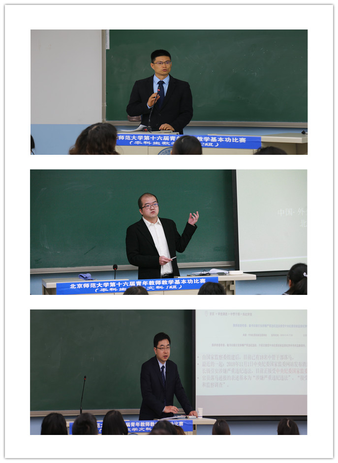 本次比赛,由百家乐真人 党总支书记梁迎修教授带队,百家乐真人 办公室主任刘航老师,办公室江文静、王盈雅老师,学工办徐淑琳、祁书峰、马丽亚老师以及部分学生到场支持,观摩了本次比赛。比赛中,选手们自信从容、思维清晰、语言流畅,表现出百家乐真人 青年教师良好的精神风貌和优秀的职业素养。比赛结束后,选手们纷纷表示获益匪浅,感慨北师大教师藏龙卧虎,勉励自己继续努力,不断提升自身专业水平、完善授课技能,争创更好成绩。