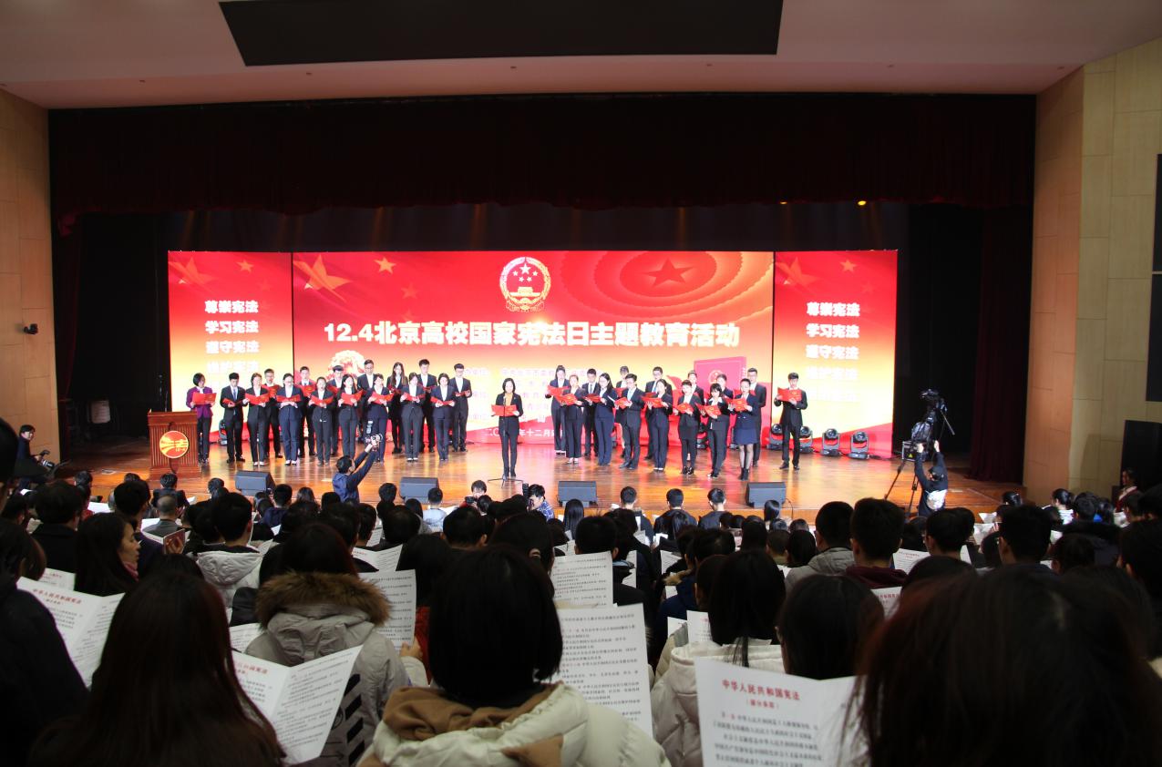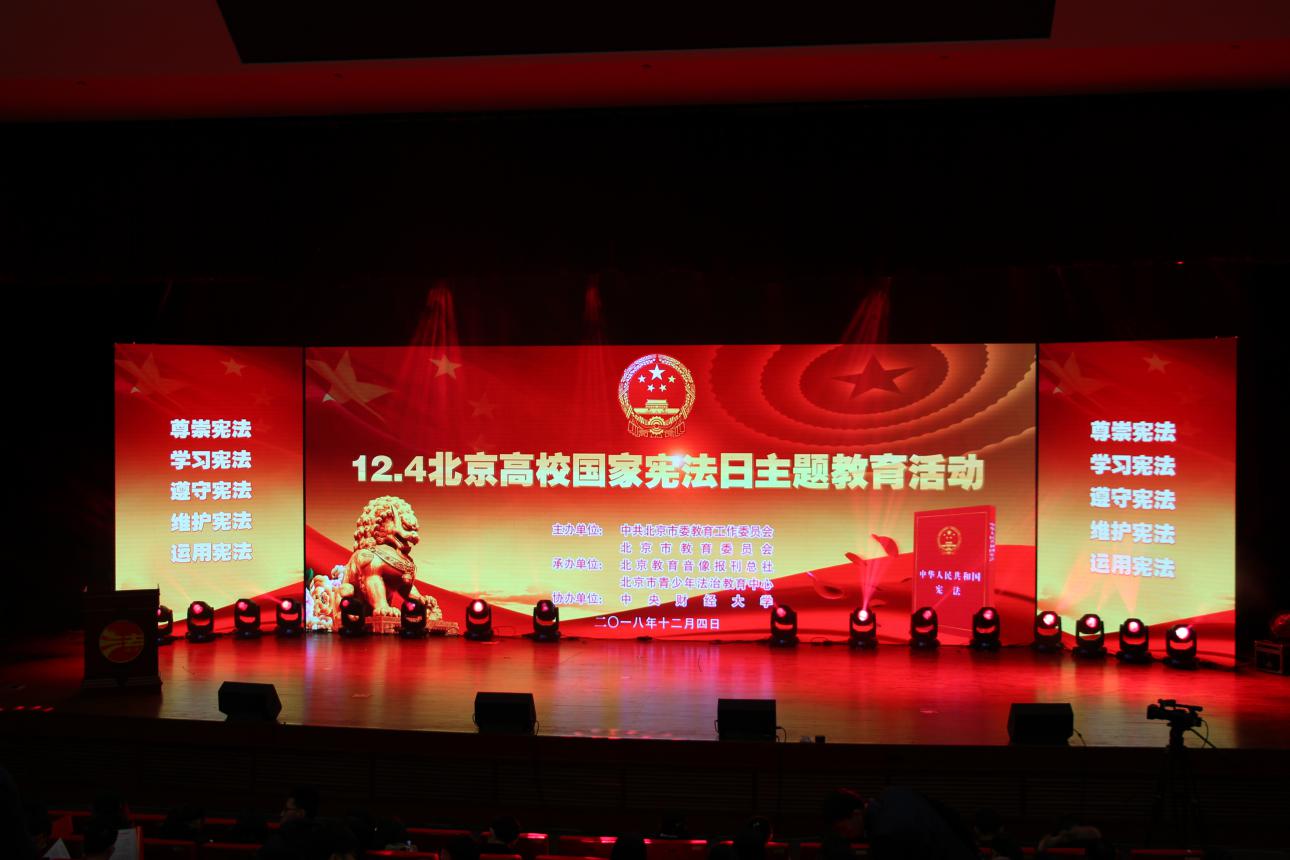 12月4日下午2:30,2018年北京高校国家宪法日主题教育活动在中央财经大学学术会堂举行。本次教育活动由中共北京市委教育工作委员会、北京市教育委员会主办,北京教育音像报刊总社、北京市青少年法治教育中心、中央财经大学承办。教育部政策法规司副处长邝璐、中共北京市委教工委副书记狄涛、共青团北京市委副书记袁慧、北京教育音像报刊总社党委书记兼社长李开发、中央财经大学党委副书记、纪委书记陈明、北京市司法局法制宣传处副处长汤瀛、北京教育音像报刊总社党委副社长、北京市青少年法治教育中心主任孟科军、百家乐真人-免佣百家乐 党总支部书记梁迎修、副院长袁治杰、百家乐真人-免佣百家乐 师生以及其他院校法治主管负责人和师生参加了本次活动。本次活动的成功举办标志着2018年全市教育系统国家宪法日宪法宣传周系列活动全面启动。