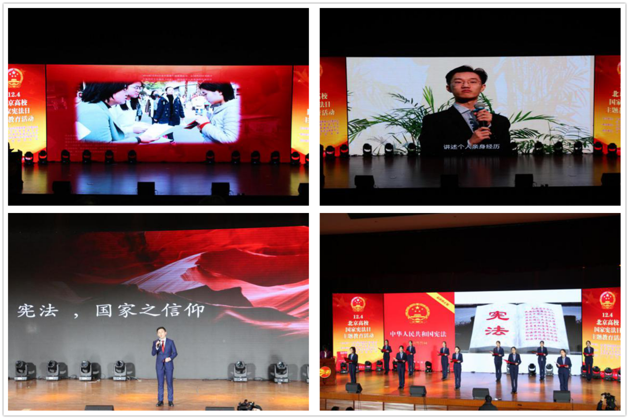 现场宪法教育氛围浓厚而热烈,形式多彩各样。活动现场展示了北京市各高校开展国家宪法日主题活动的剪影和法治微视频大赛优秀作品、第三届“学宪法讲宪法”一等奖选手的主题演讲以及法治文艺大赛获奖作品诗朗诵等内容。