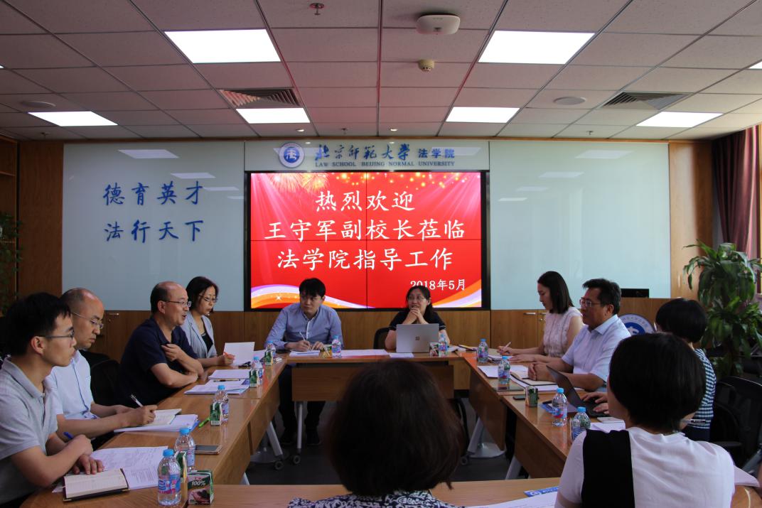 5月30日下午,王守军副校长协同相关人员来到百家乐真人 指导工作。百家乐真人 院长卢建平教授、党总支书记梁迎修教授、副院长袁治杰副教授、党总支副书记原茵老师、诉讼法学教研中心主任徐胜萍教授、法律硕士教育与管理中心主任张晓婷副教授、经济法与环境资源法学教研中心贺丹副教授、基础理论法学教研中心李德嘉老师、办公室主任刘航老师等十几位老师出席了此次会议。