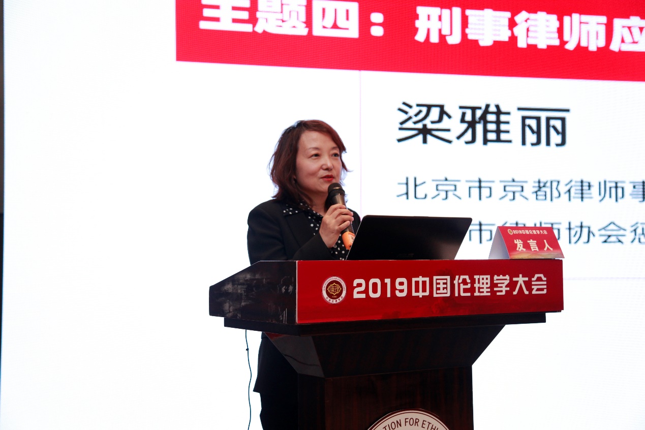 北京市京都律师事务所高级合伙人,北京市律师协会惩戒委员会委员梁雅丽律师从办案单位要求律师揭发自己当事人的案例出发,讲述了刑辩律师的角色定位。刑辩律师不仅维护委托人的权利,也维护公民的基本权利。刑辩律师与当事人之间的信赖关系是刑辩制度的根基。反过来讲,当事人不能通过检举律师获得低的刑期的目的来检举律师。基于这个信赖关系给律师带来的义务是要勤勉尽责,为当事人保守秘密。律师还应积极履行维护社会公共利益的责任,维护公平正义是其最大的体现。对于一些重大的案件,则需要考量律师两方面伦理上的考量,这需要律师要其中寻求平衡。