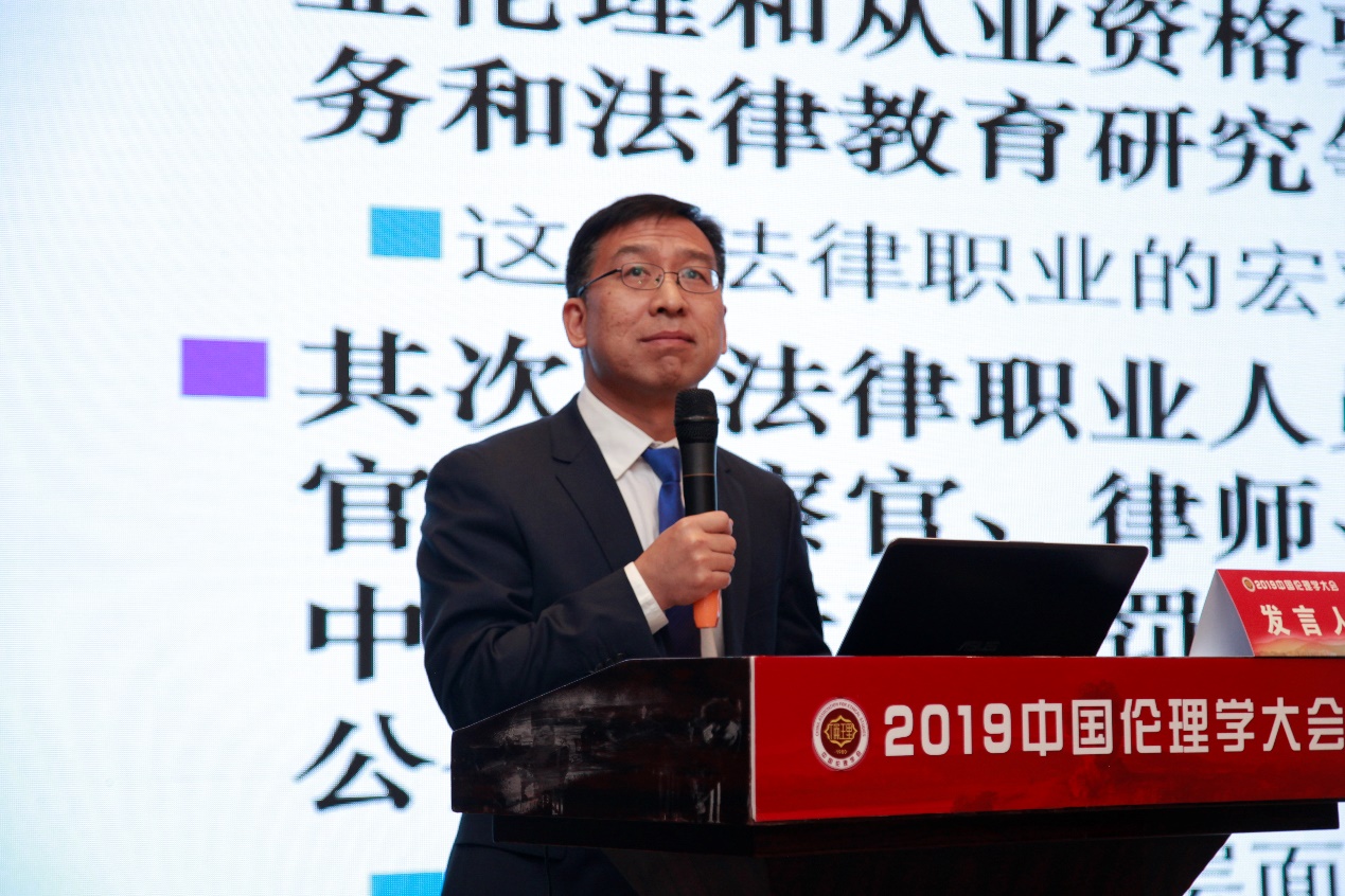 对于上述主旨发言,曹刚教授作了点评。曹刚教授认为,法学界对于法律职业伦理作了宏观上的定位,法律职业用来修饰伦理。在法学界看,似乎法律伦理就等于是法律职业伦理,其实法律伦理研究的范围要远远大于法律职业伦理。因为法律职业伦理成为了一门必修课,因此法学界才有这样一个动力坐在伦理学的会场上跟伦理学学者对话。实际上法律职业伦理是法律伦理中一个主要的伦理,但是法律伦理不仅仅是法律职业伦理。在谈到法律职业共同体时,我们不能只是讲规范,实际上规则在约束我们时,实际上是那个抽象的价值共识或者共同的价值观在约束我们。当然,道德是脆弱的,是需要被保护的,我们有必要将法律职业道德制度化、法律化,从而使得有个最低遵循的行为准则。