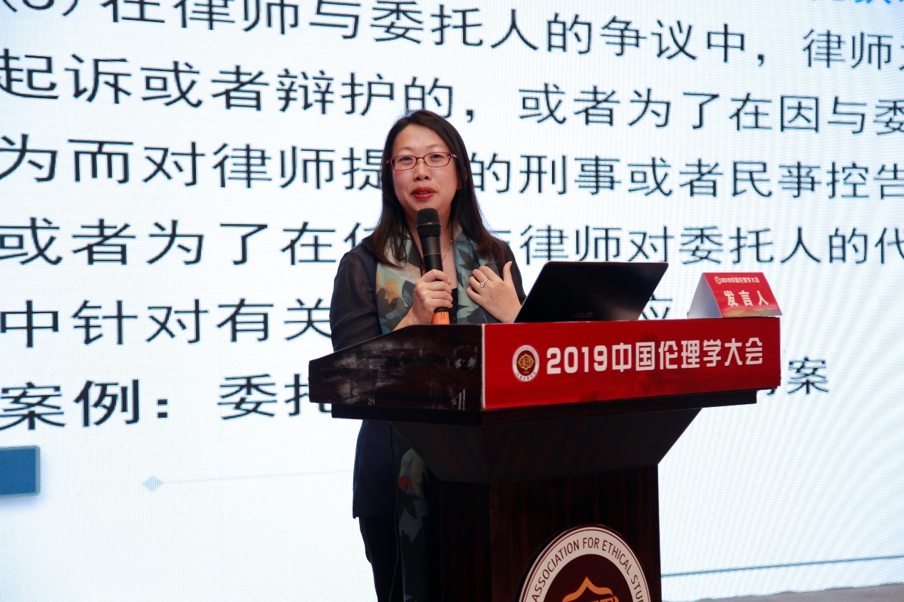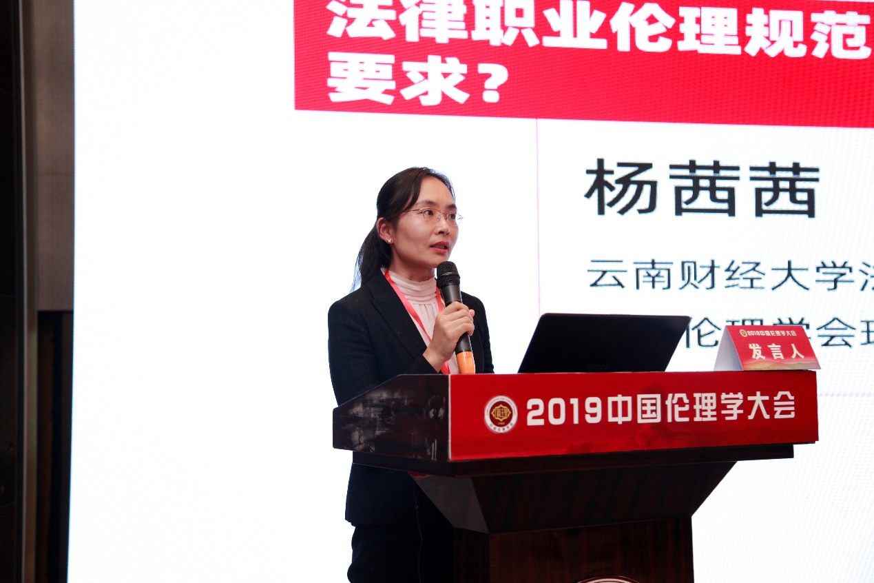 云南财经大学百家乐真人 副教授、法伦理教研室主任,中国伦理学会理事杨茜茜,她演讲的题目是“法律职业伦理规范建构:如何回应新时代的道德要求?”。她提出,法律职业伦理是一种理性构建,是一种制度性诉求。作为应用伦理学中的分支,法律职业伦理的思考主要是建构在全球化视域之下,法律职业的个体乃至法律职业共同体的本质不再是过去式,而是如何有效回应新时代的道德要求。现代社会中的合法性概念逐渐被溶解、吸收进证成性概念之中,在这种思想观念背景下,我们法律职业规范建设就应当多考虑整个法治世界。法律职业所持有的伦理规范和规范性概念都生存在我国司法体系的框架结构中。法律的价值和理念构成了法律职业伦理的逻辑起点。法律职业伦理的功能就是使中国法治新时代成为可能。法律职业伦理规范的功能可以分以下三个层次:一是法律职业者的自我约束力。二是法律职业者公正之心的内在感召力。三是法律职业功能的社会和谐力。法律职业应当设置一种为共同体成员共同行为规范提供命题之真理条件的一般说明的规范标准,即提出一整套道德准则和标准之合法性证明的理论。社会主义法治现代化的实践呼唤着我国法律职业伦理学研究的变革和繁荣。