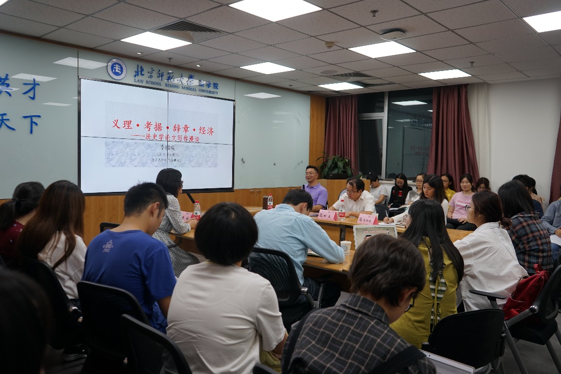 首先,李教授从如何选题入手,确定了以小见大,论从史出的目标,希望同学们无论是写文章还是做学问都要将论点建立在事实上,尤其是法史方向的论文,更应该从材料中发现问题,剖析问题。并提出了一系列的建议步骤:首先应该阅读经典法史文献,可与老师进行讨论,在有心得的基础上假定选题,并在之后的查阅研究过程中修正选题,最后再按照选题来搜集整理材料,形成自己的思路。