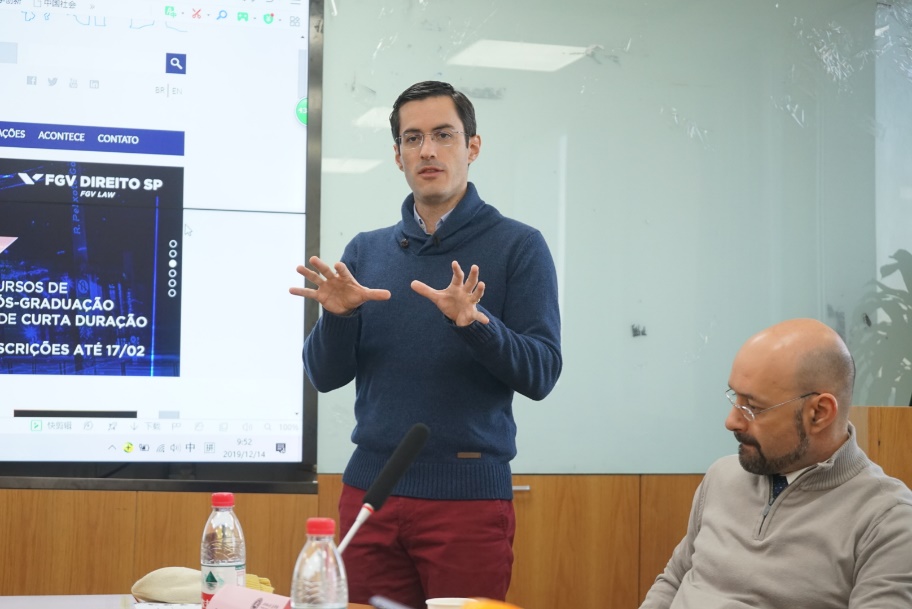 首先,袁治杰副教授对在座专家学者的到来表示了热烈欢迎,并回顾了百家乐真人 与巴西FGV大学开展的学术交流活动。同时他强调:中国与巴西日趋频繁、数量庞大的经贸往来关系,对中国与巴西比较法的学习研究具有很大的实务价值,而兼具法律与葡语的复合型人才将在巴西拥有较大的市场竞争力,鼓励同学们多多关注巴西他表示学生是学院开展各项合作的核心和灵魂,支持同学们也参与其中,学院亦将进一步推动与金砖国家的交流合作,为同学们的未来发展开拓空间。