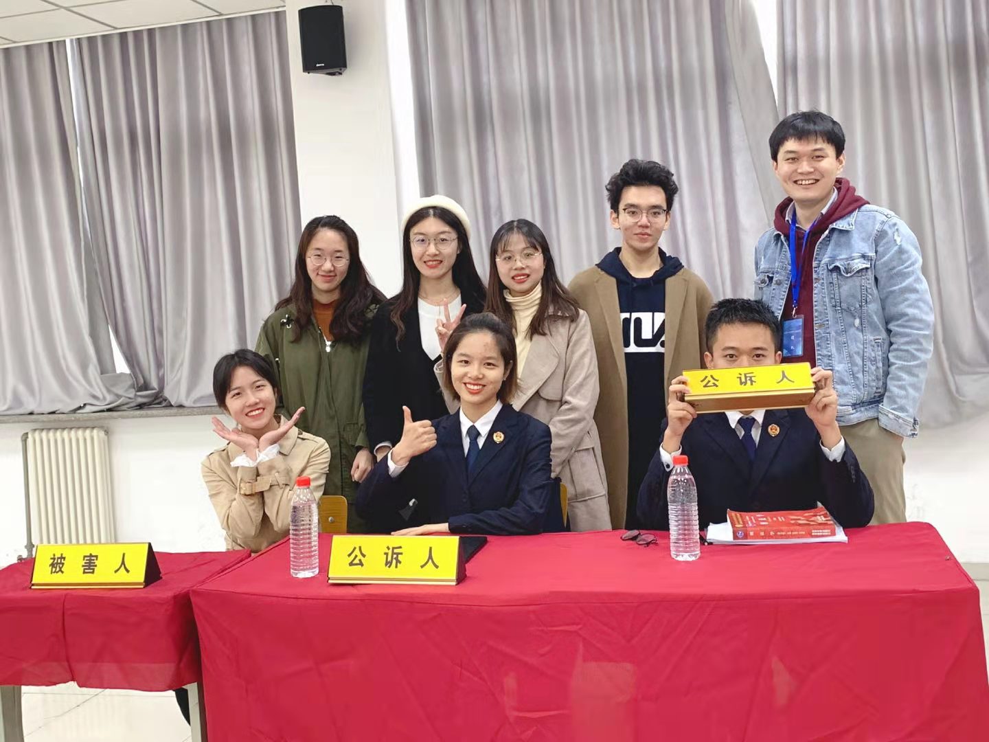 这一个月,大家一起熬夜写文书,疯狂找判例,崩溃改思路,逮着人就开始讯问,抓着机会就开始表演。可爱的小机器人sh、时代女精英cz、最美耳钉姐dy、文书放大镜mj、以及外卖拼单王hn组成了颜值一流、流量一流、业务能力一流的最强公诉人团哈哈哈哈。(三轮是控的手气很绝!!)还有最最最可爱的贴心的有能力的弟弟妹妹们:立志成为新一代鹏鹏的lw,每次都有重大发现的yc,总是默默帮我们找资料的yj,还有总是逃不过举证质证的xy,谢谢你们,未来真的可期!
