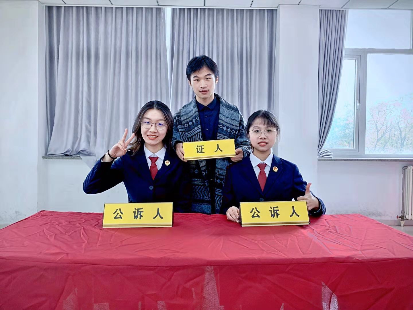 要特别谢谢第三轮和我并肩作战的神仙蕙宁、明骏,让我们不至于倒在离终点最近的地方!!!感谢在18楼被我们盘问的刑科院巨佬们,感谢晚上给我们指导、还得回我们微信的检察员、法官哥哥姐姐,感谢给我们建议的消防员、法医哥哥,感谢跟我们模辩的外交、北邮、首经贸的同学,感谢让我们提心吊胆的对手!最后想要感谢默默付出,给我们租衣服、请法官和检察员、租校车、陪我们比赛的德嘉老师!