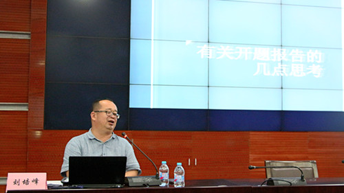 最后,刘培峰教授做《关于开题报告的几点思考》的主题讲座,将自己参与论文开题及答辩过程中的思考与同学们分享,指导同学们如何选题、写出高质量的论文开题报告。
