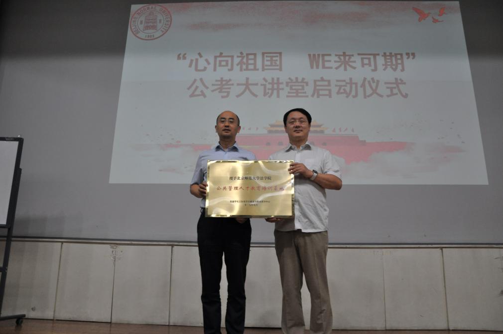 2019年9月29日下午14时30分,北京师范大学党委学生工作部学生就业与创业指导中心与百家乐真人 共同举办的 “心向祖国·WE来可期”公考大讲堂启动仪式暨公共管理人才教育培训基地授牌仪式在敬文讲堂顺利举行。