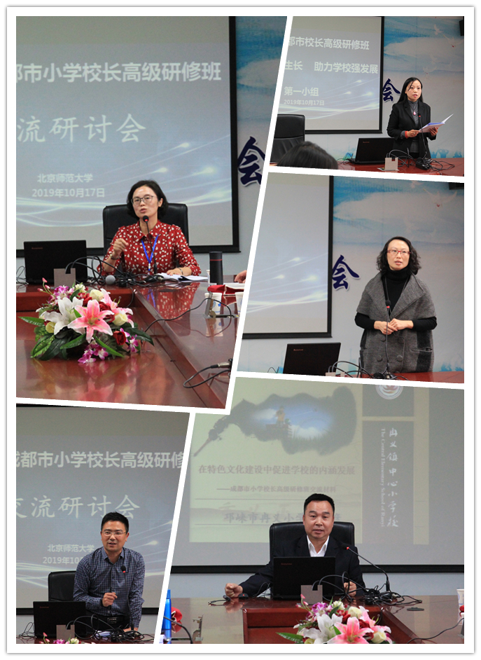 24日下午,2019年成都市教育局小学校长高级研修班总结交流会如期召开,五位学员代表就几天来的培训学习体会和收获进行总结分享。学员们均表示在北京师范大学的收获颇丰,尤其是多种学习方式并行,丰富有趣。教授们的理论知识使他们理念得以迅速提升,受益匪浅;进入两所学校的实地考察交流,让理论联系实际,直观感受好的教育理念是如何落地生根;课后小组研讨,促使学员们增进友情,成为教育践行的伙伴。同时,五位学员还进行了反思,认为还需要通过学习提升自己的角色意识,审视自己的位置和职责,进而调整自己的思想和行为,校长如何将管理的理论和想法落于实际,还需要进一步的探索学习。