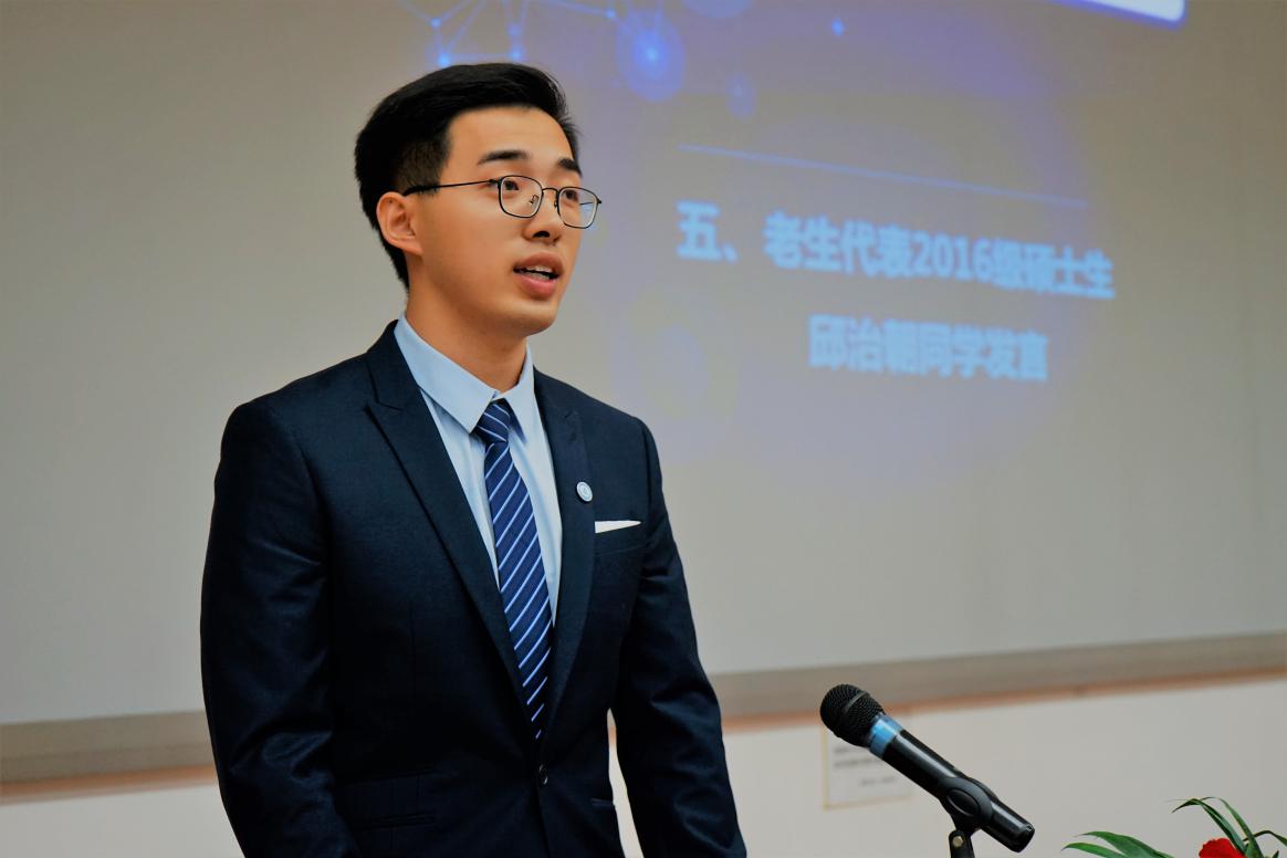 接下来,2016级硕士生邱治朝、2018级本科生黄志尧分别作为老生与新生代表发言。邱治朝同学向大家分享了大学的乐趣与挑战,指出法律人应肩负的责任、担当、道义,呼吁京师法律人坚持理性、守住内心道德底线。仰望星空,脚踏实地,拿起法律之剑,行走天涯 ;黄志尧同学则代表全体新生向辛勤付出的老师表达了敬意及成为北师大法律人的自豪与荣耀,同时也为自己在百家乐真人 的专业学习、大学生活做了规划。她希望自己和同学们一同能坚持做到 “无负今日,不惑、不忧、不惧,做一个顶天立地的人”。