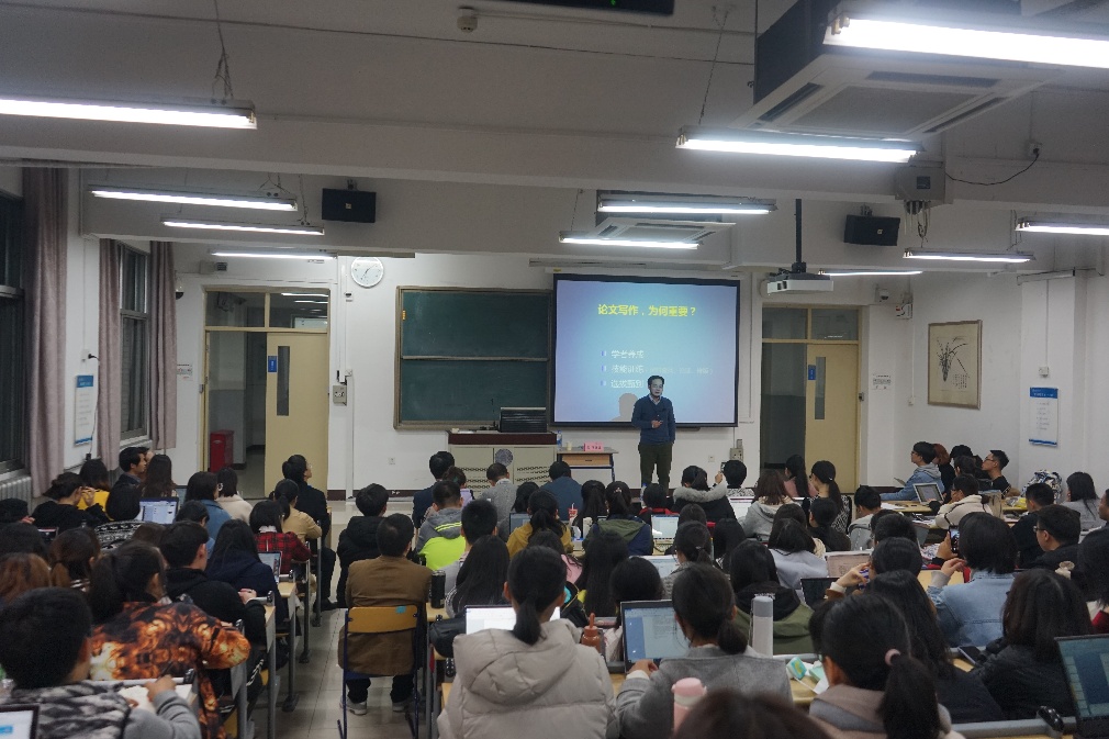 首先,何海波教授就论文写作的重要性、难点在哪里展开了针对性的论文写作分享。从论文写作的问题、论文写作的论证、论文写作的资料、论文写作的语言等四大方面及论文标题、导论、结论、引注等具体论文写作技术方面做了详略得当的介绍。何海波教授语言诙谐幽默,讲座进行过程中不乏师生的互动,主题严肃但讲座现场气氛热烈。何海波教授在讲座最后向大家分享:写作是一门技艺,要去看、去练、去琢磨;学术是一种态度,要用脑、用心、用性情,以勉励与会学生进行论文写作。